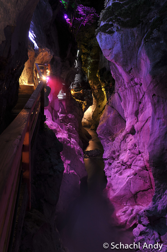 Fotografiert Abends in der mystisch ausgeleuchteten Lammerklamm im Salzburgerland. Einfach ein unvergessliches Erlebnis durch so eine toll beleuchtete Klamm zu marschieren.